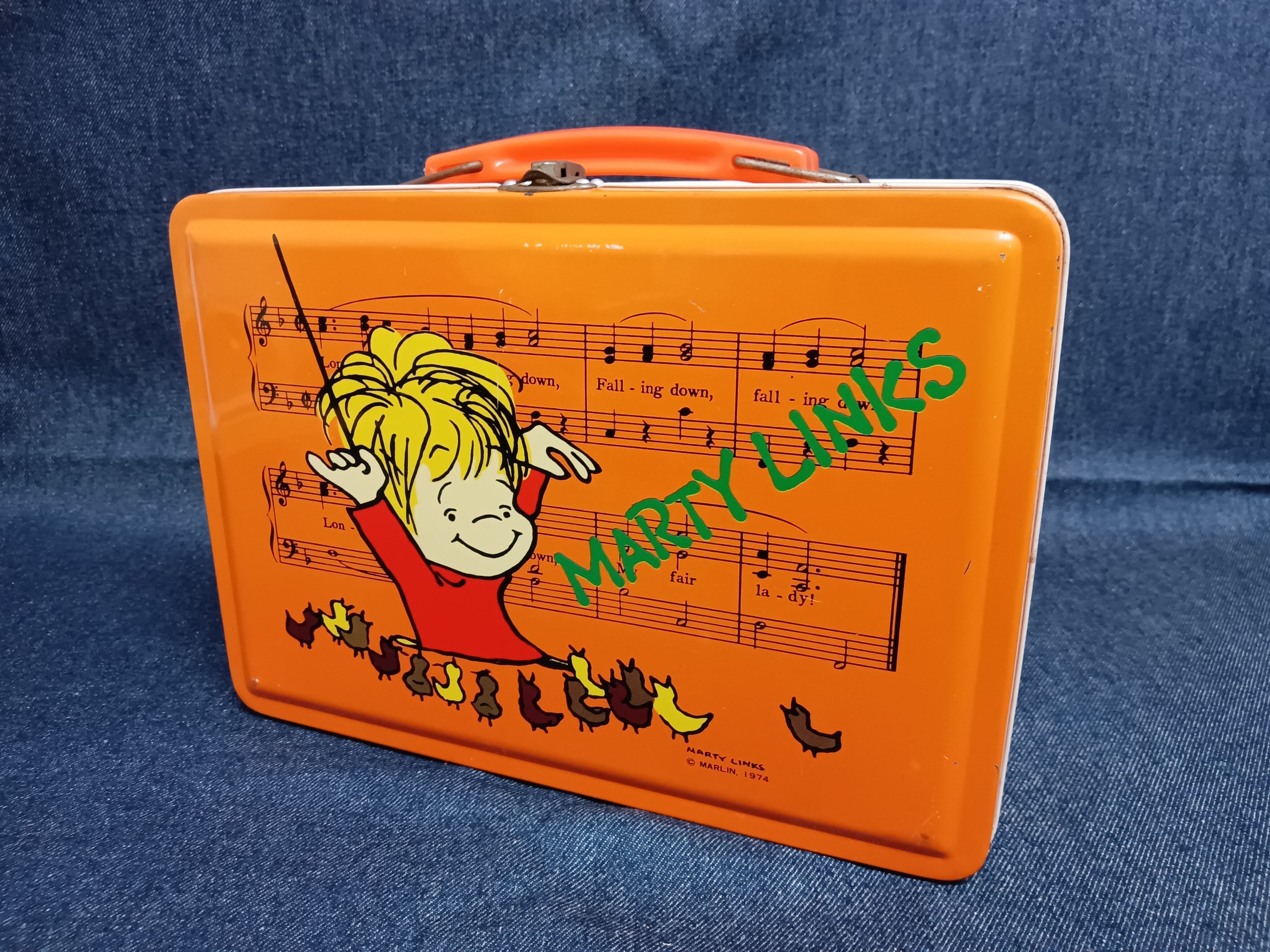 1974年にサンリオから発売された、マーティ・リンクス(Marty Links)デザインのブリキ製ランチボックスです。