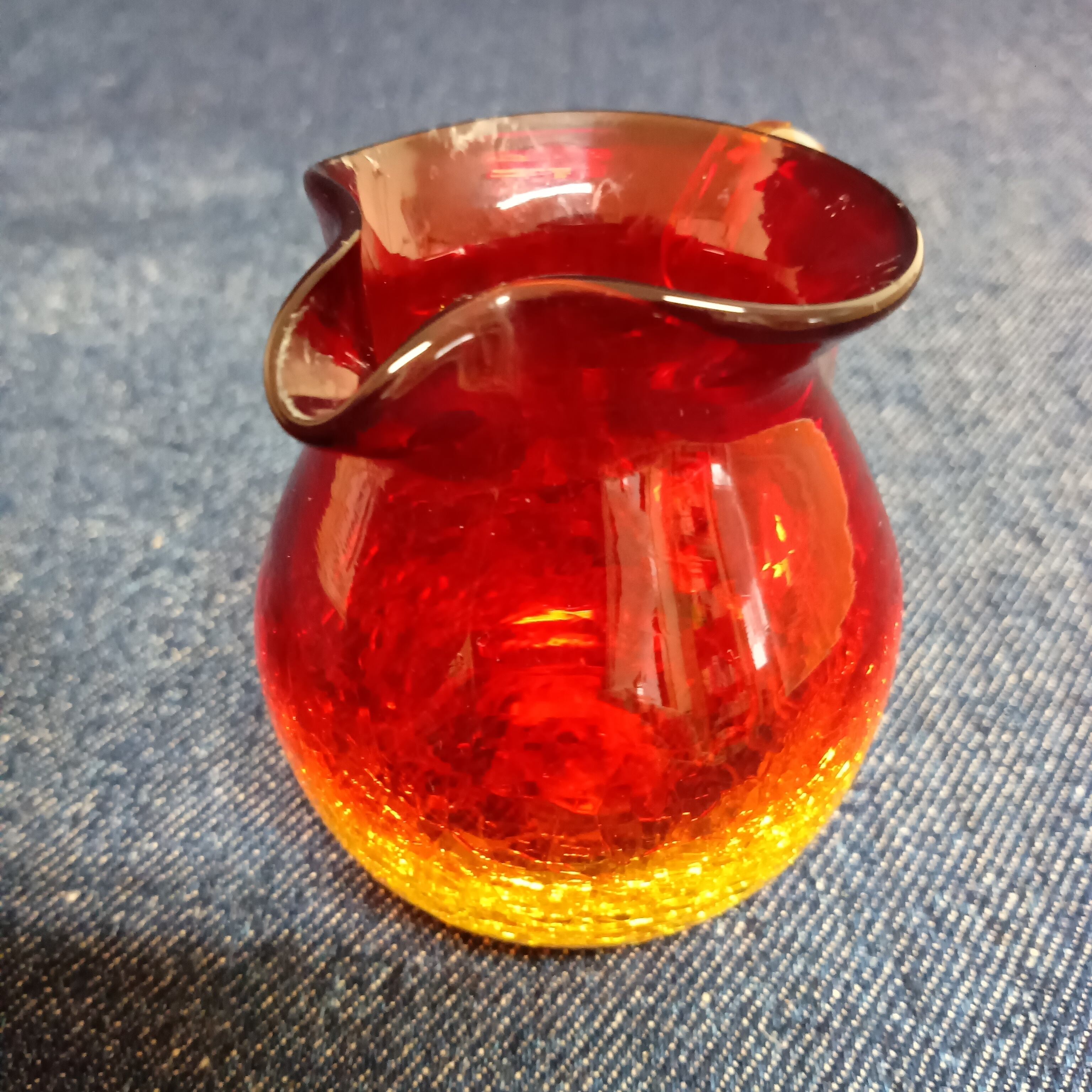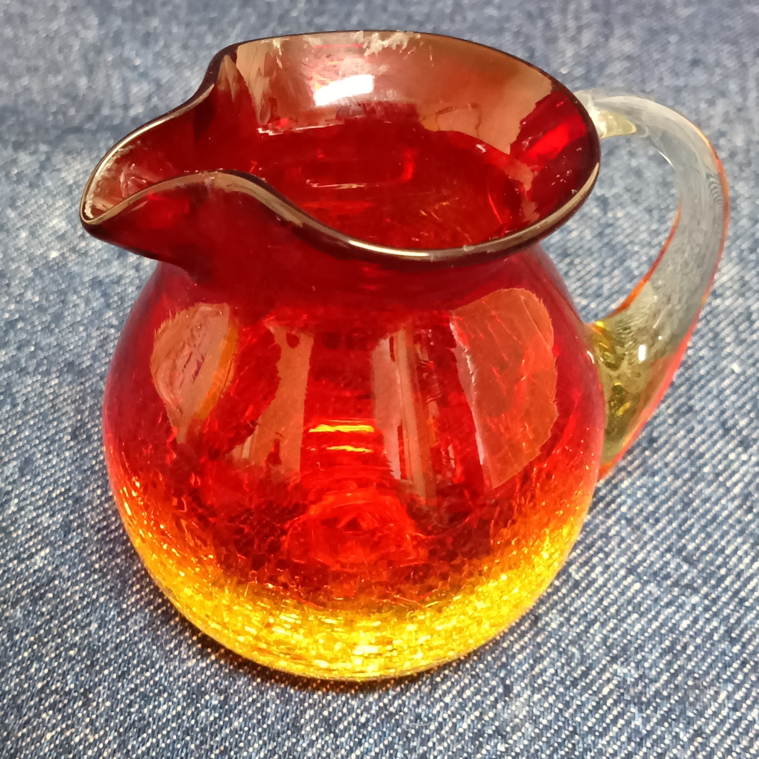 琉球ガラス★赤×黄 グラデーション ミルクピッチャー/インテリア雑貨 置物 レトロ