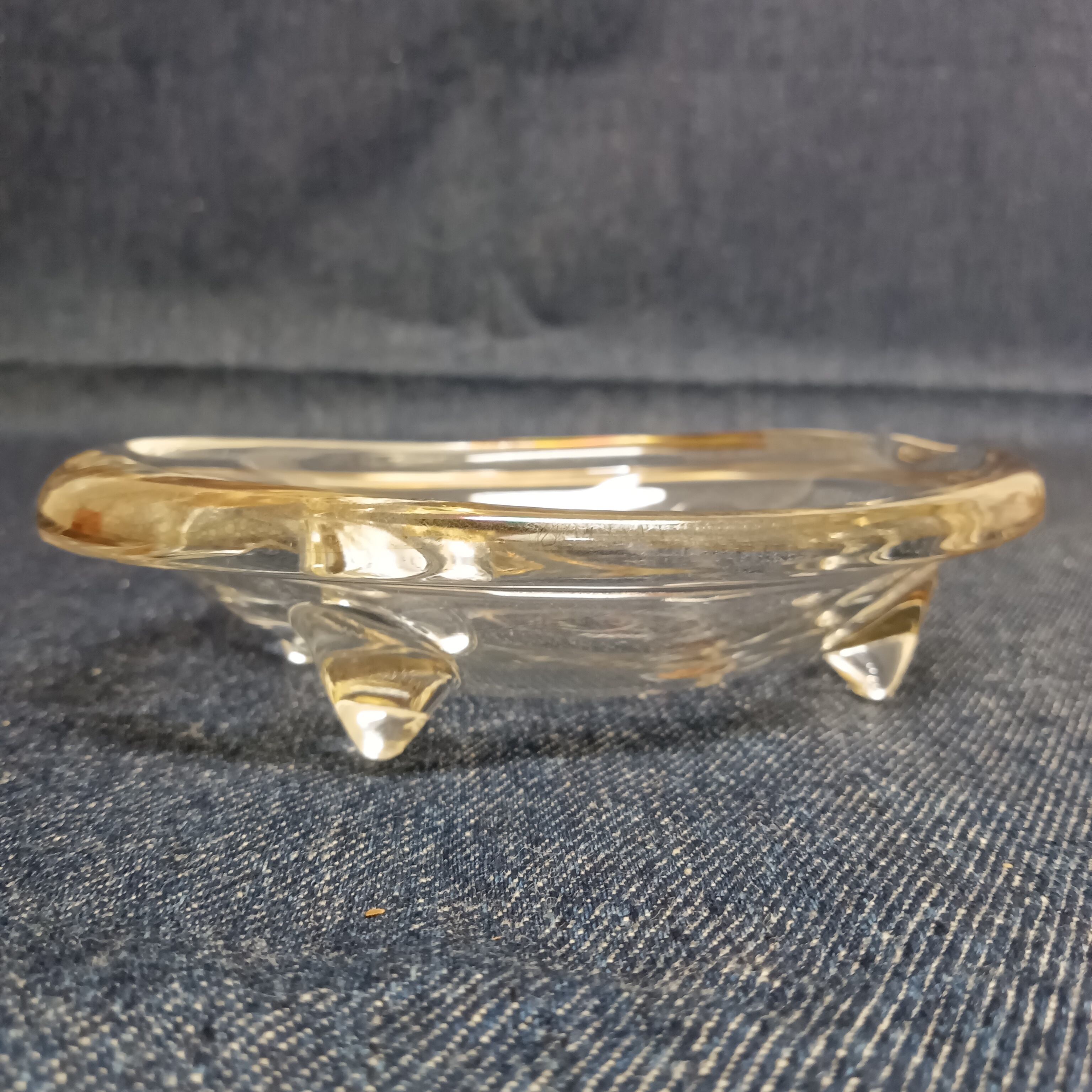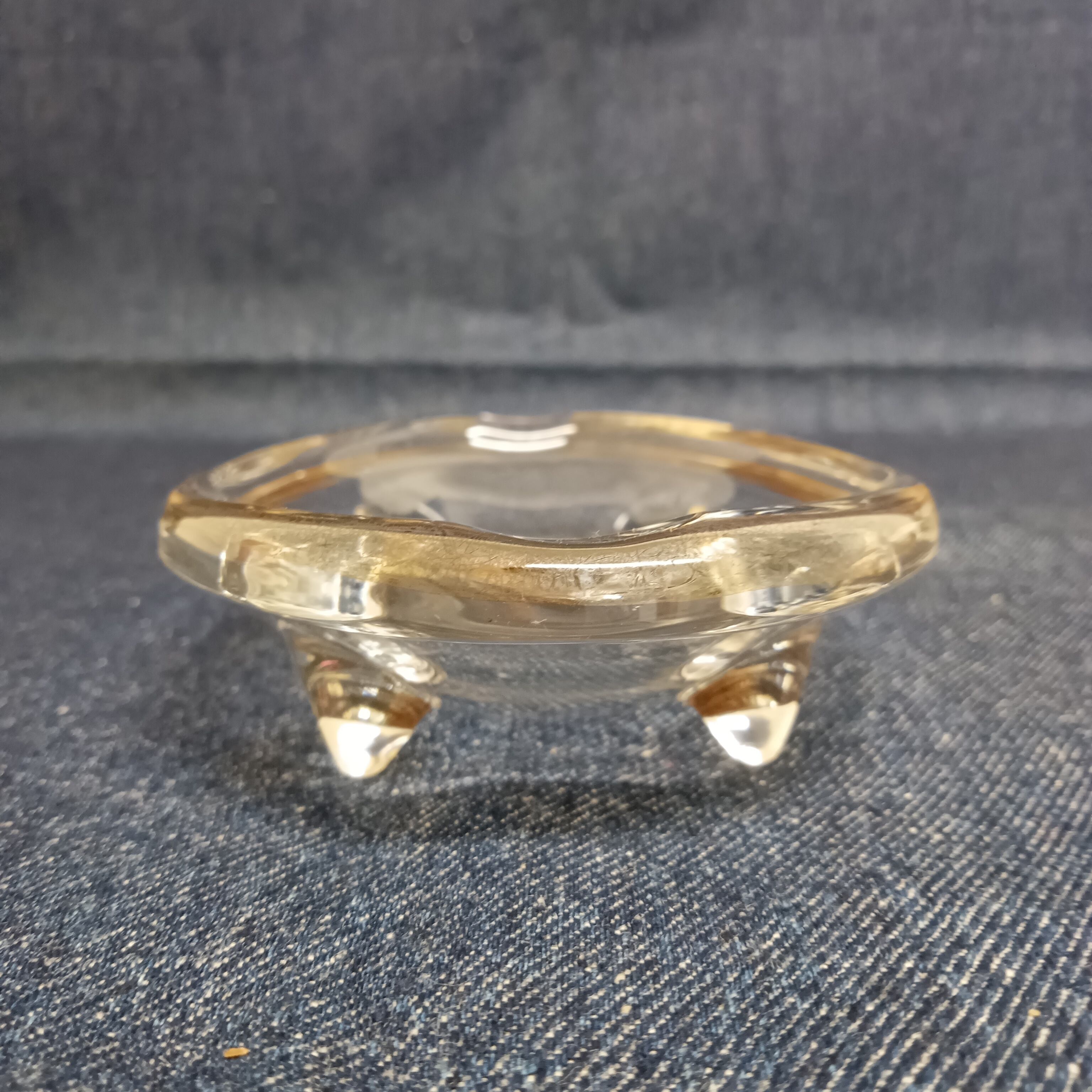 昭和レトロな雰囲気ただよう、4本脚付きのガラス小物トレイです。