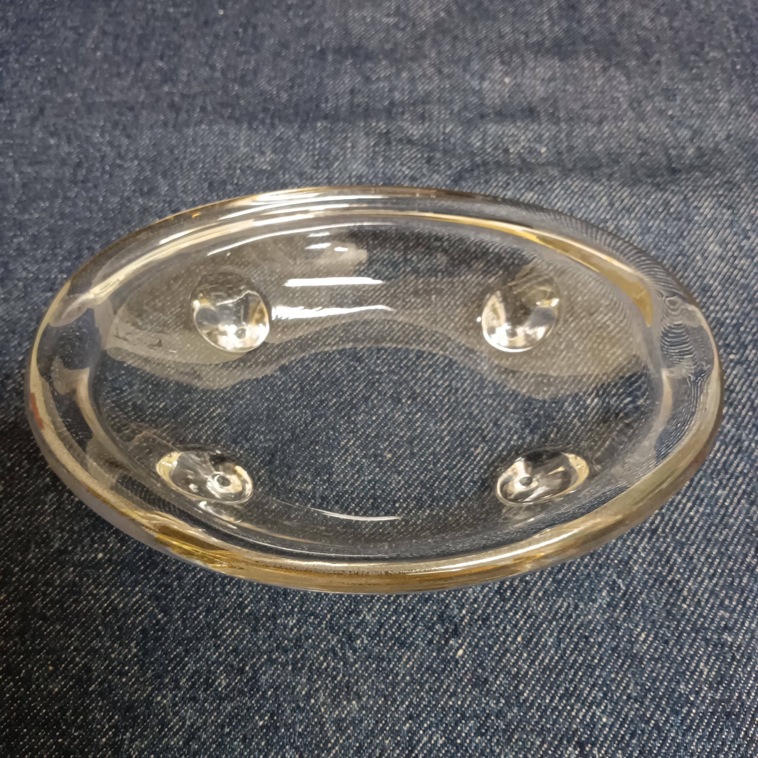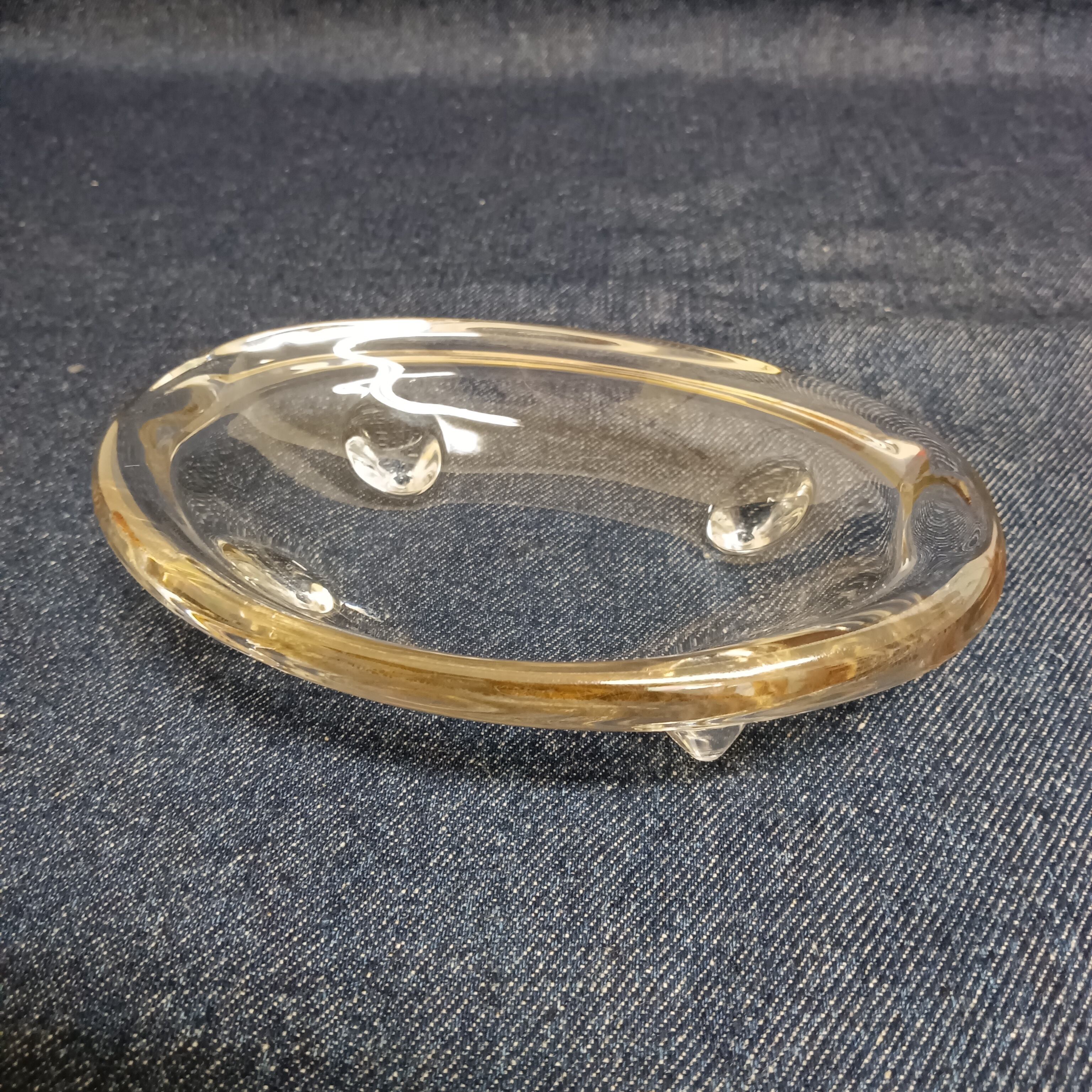脚付きガラス小物トレイ / アクセサリープレート / ディスプレイスタンド / 楕円皿 / 昭和レトロ