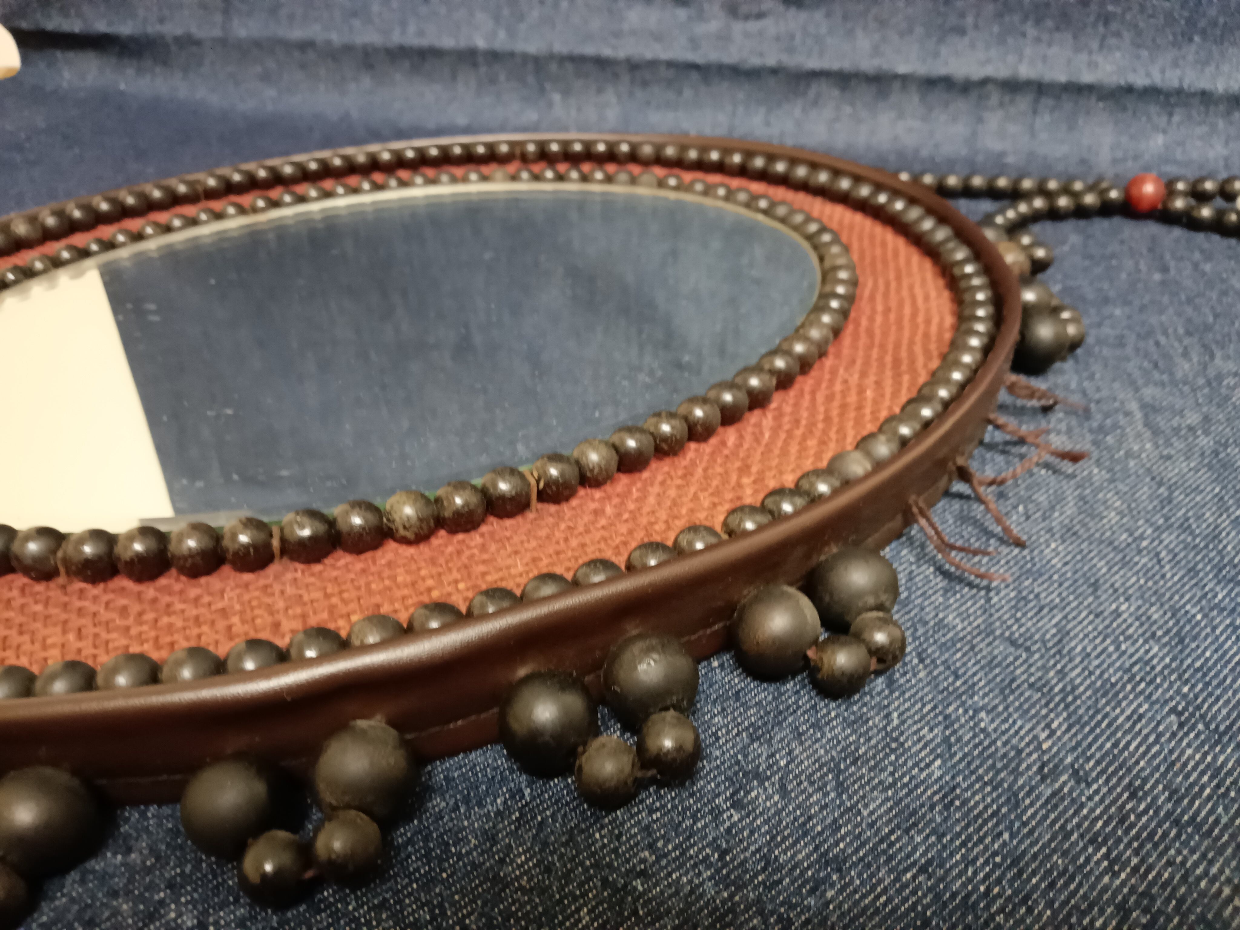 昭和レトロ ビーズフレームミラー 壁掛け鏡 アンティーク風 インテリア雑貨