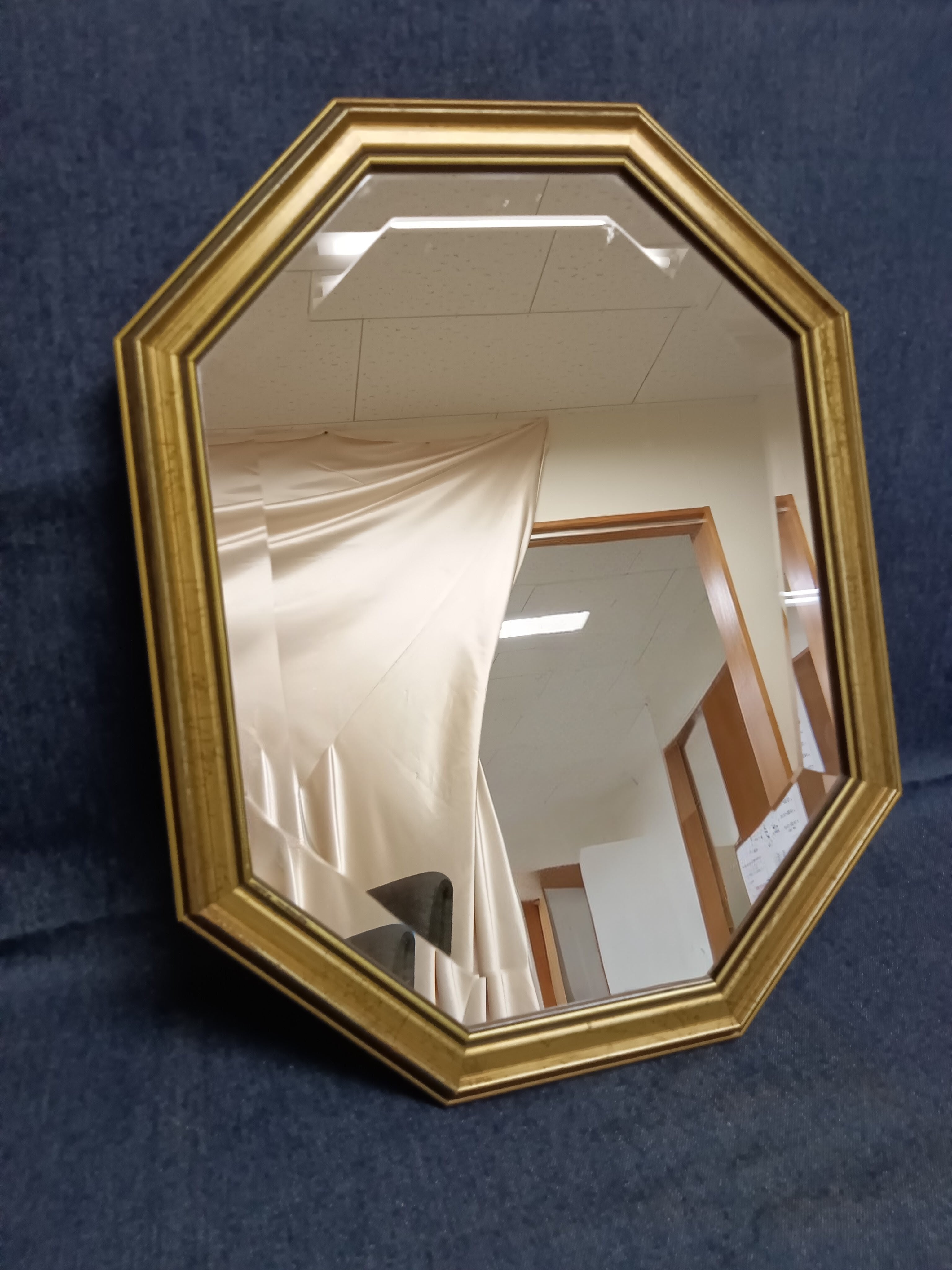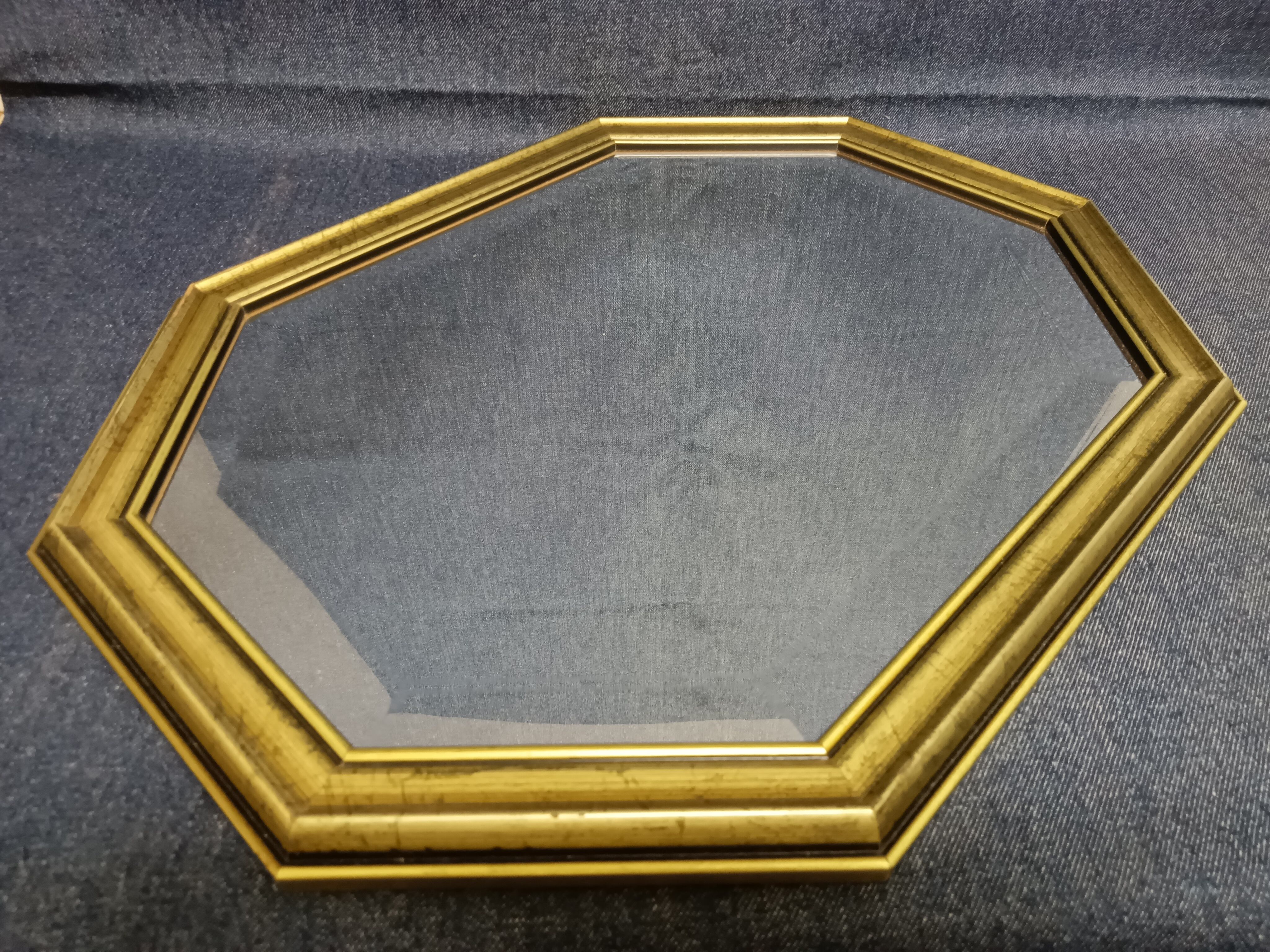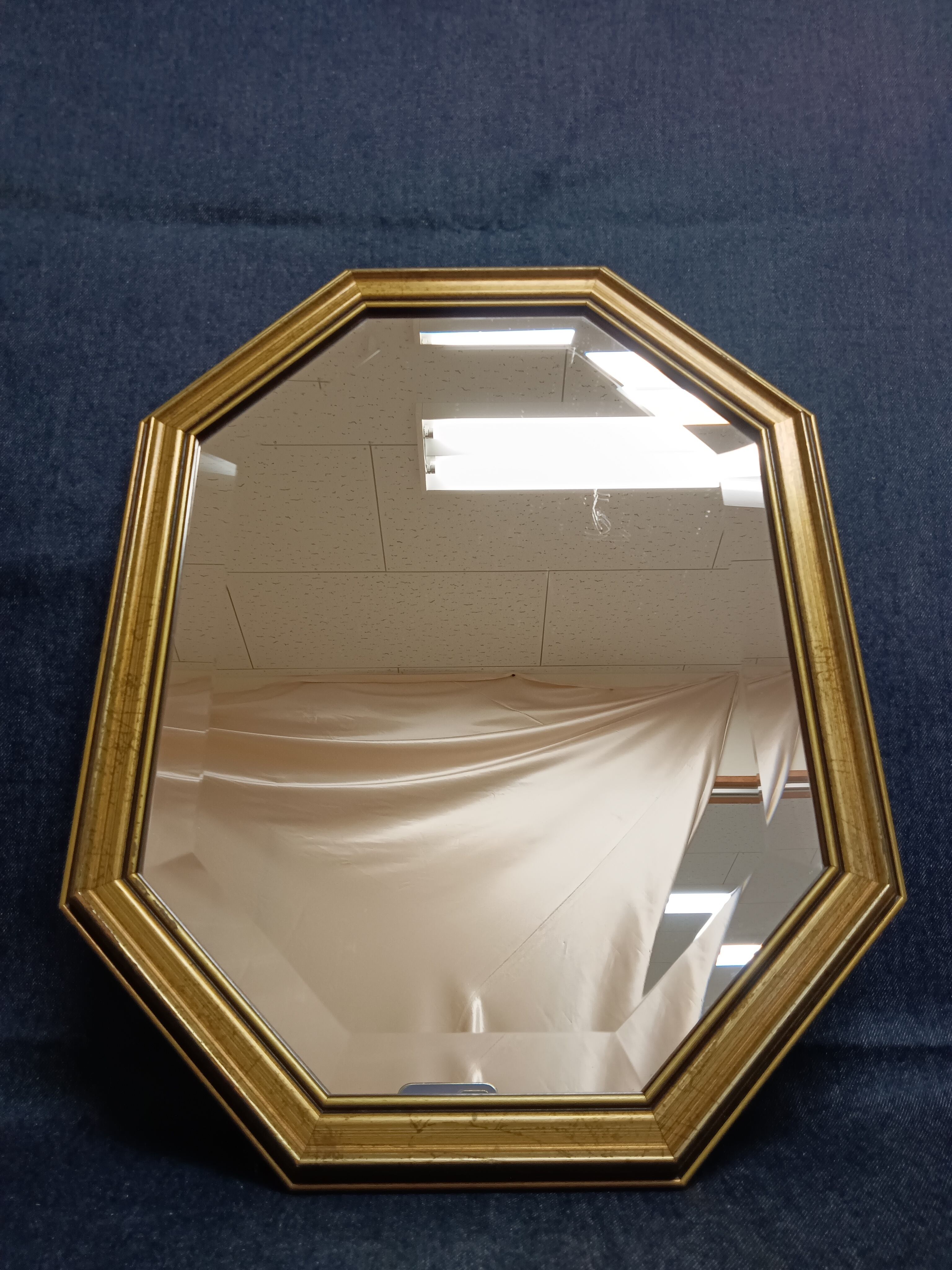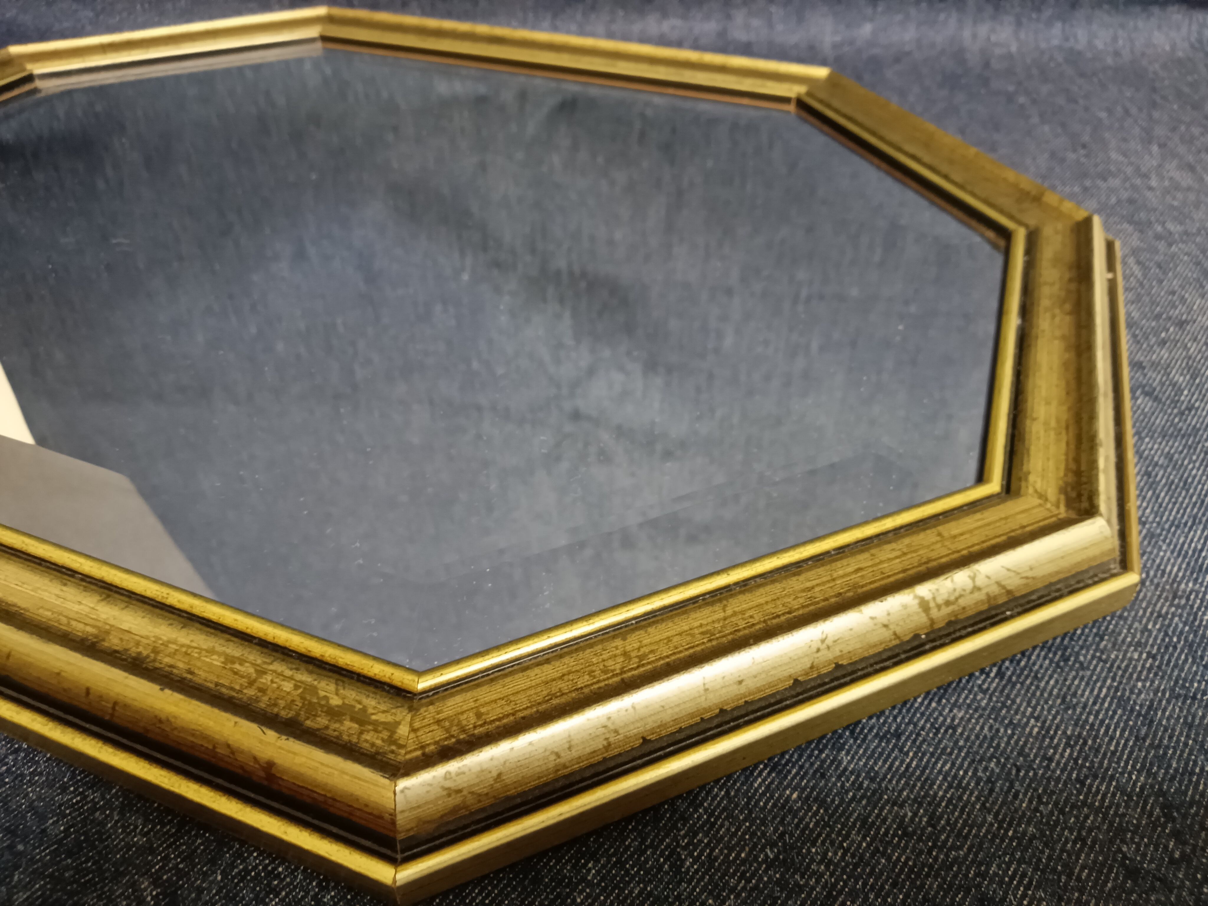 イタリア製 八角形 ウォールミラー 木製フレーム 鏡 レトロ アンティーク調