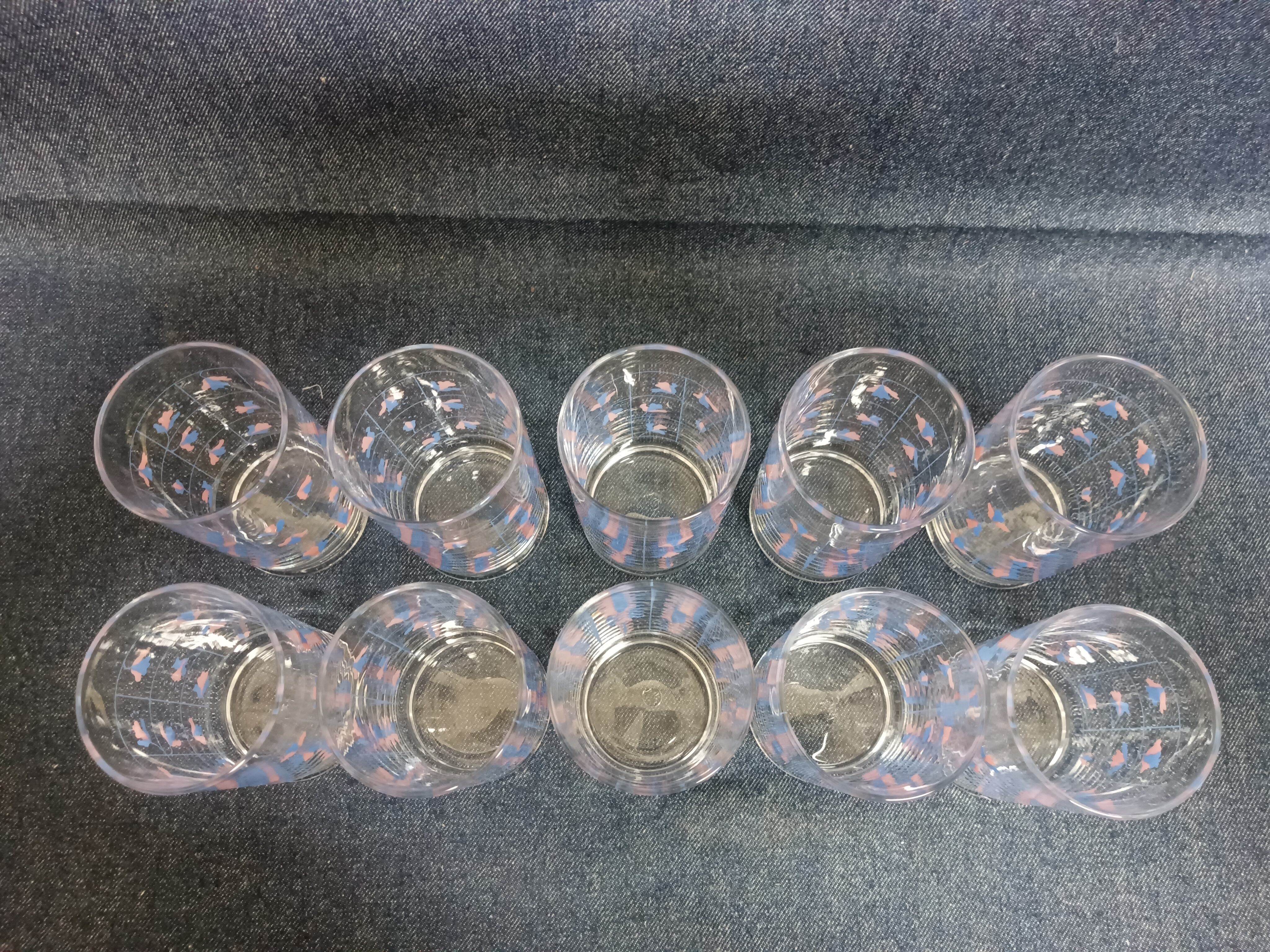 1970〜80年代頃の「佐々木ガラス(Sasaki Glass)」製、デコレートタンブラー10個セットです。