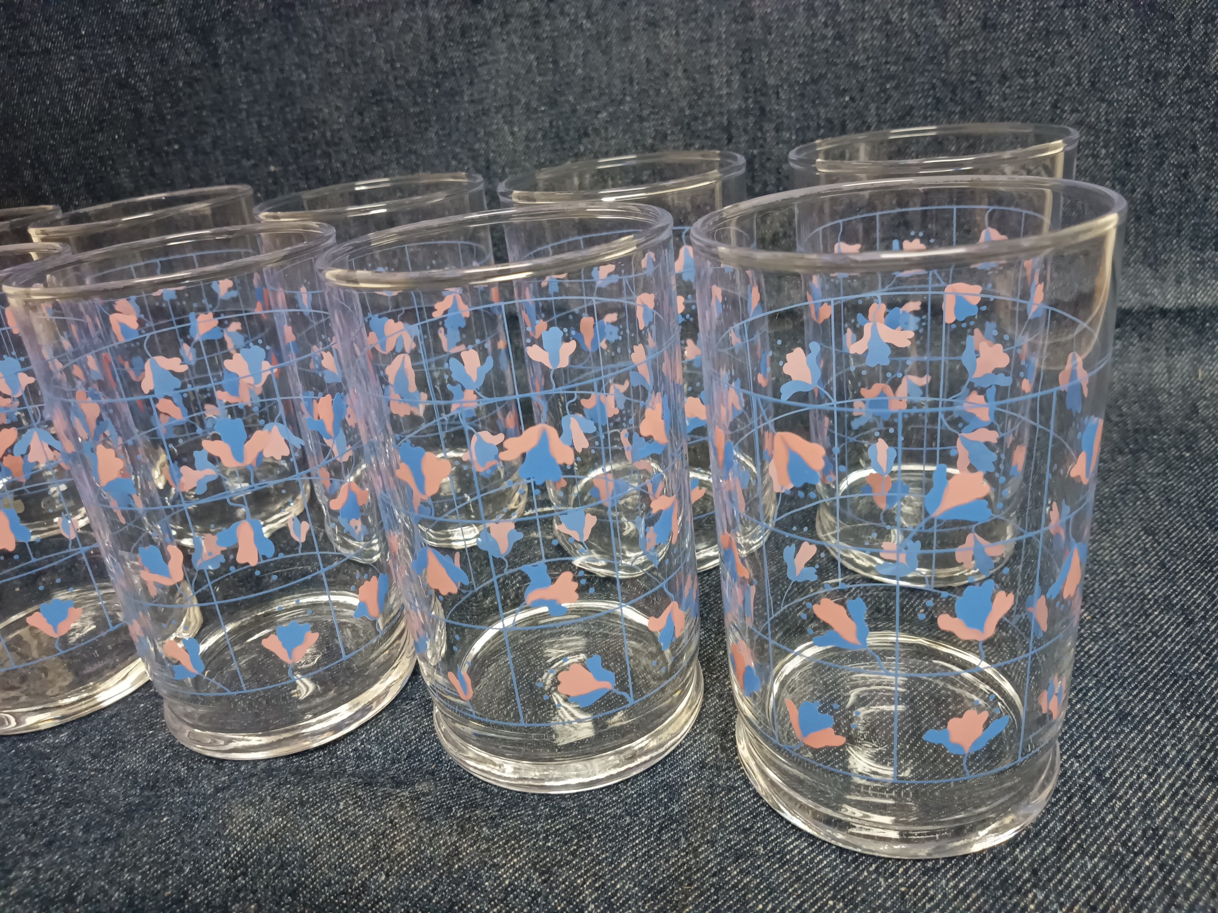 佐々木ガラス グラス 10個セット 昭和レトロ デコレートタンブラーセット ブルー×ピンク ヴィンテージグラス 箱付き