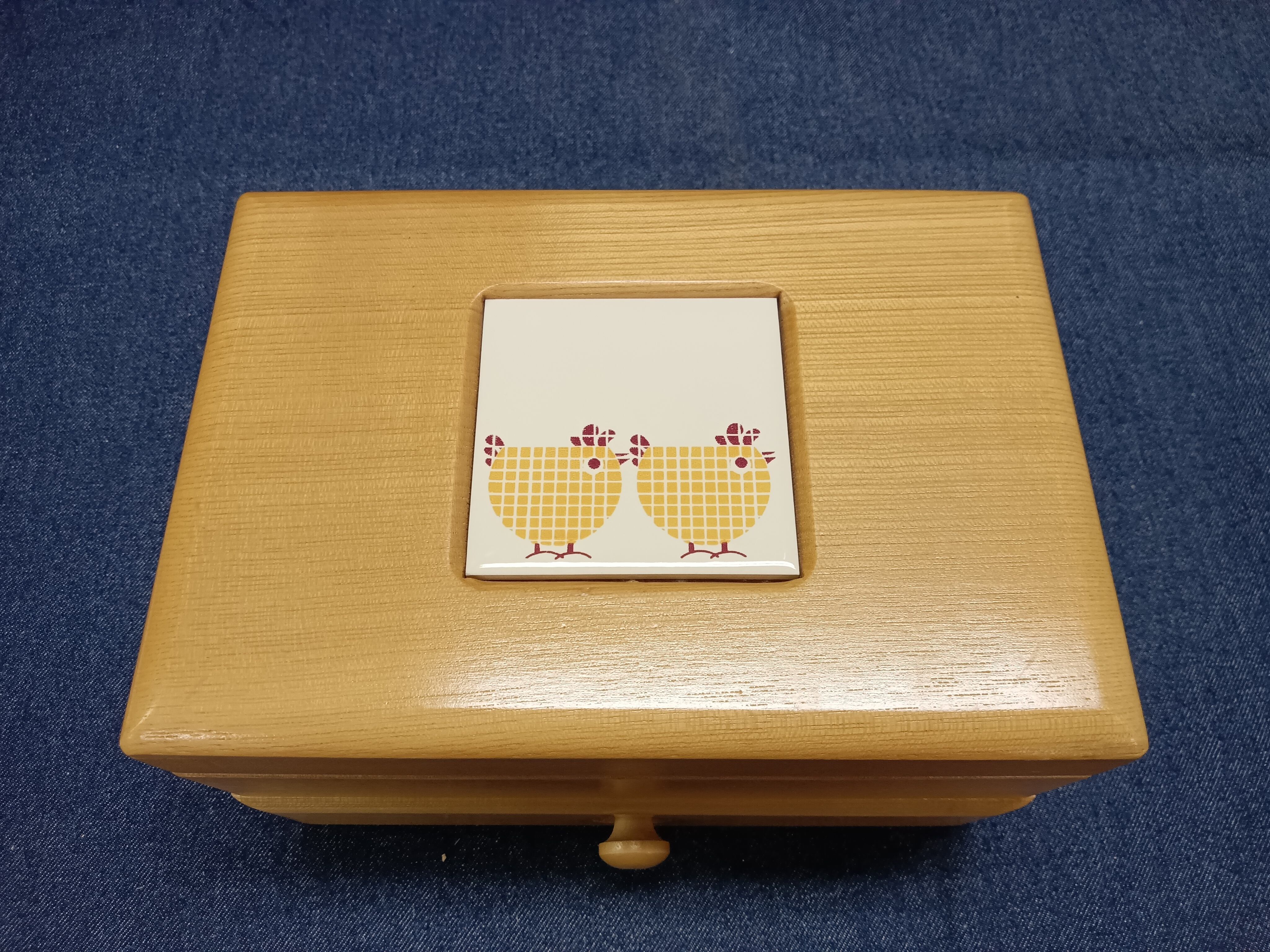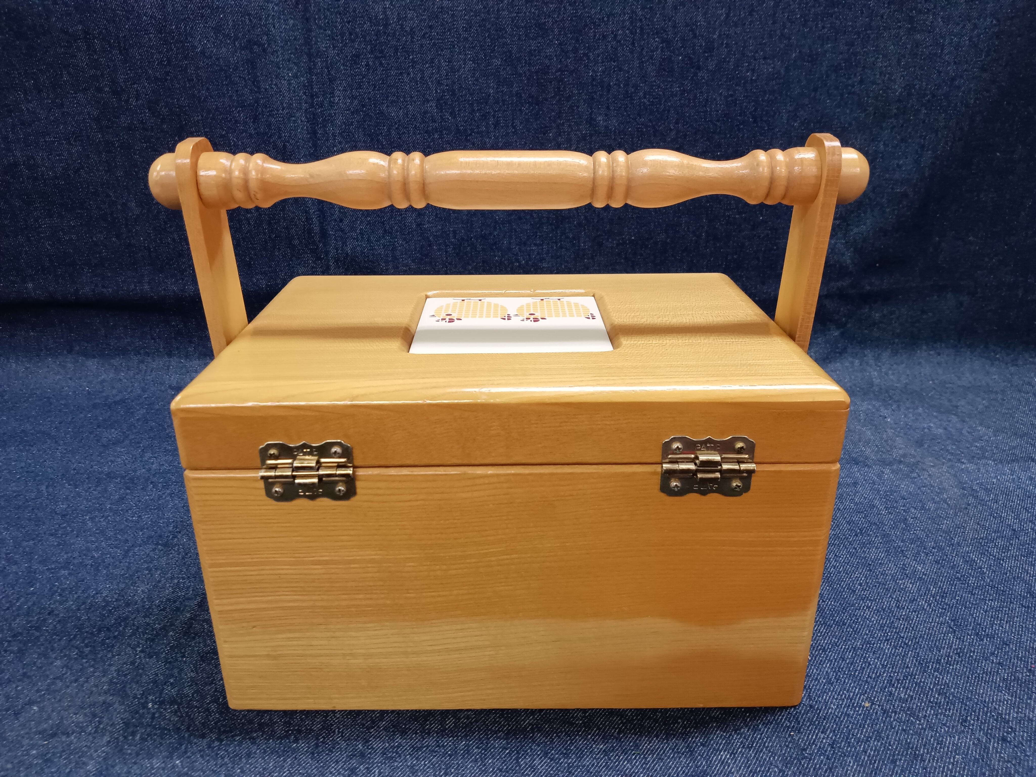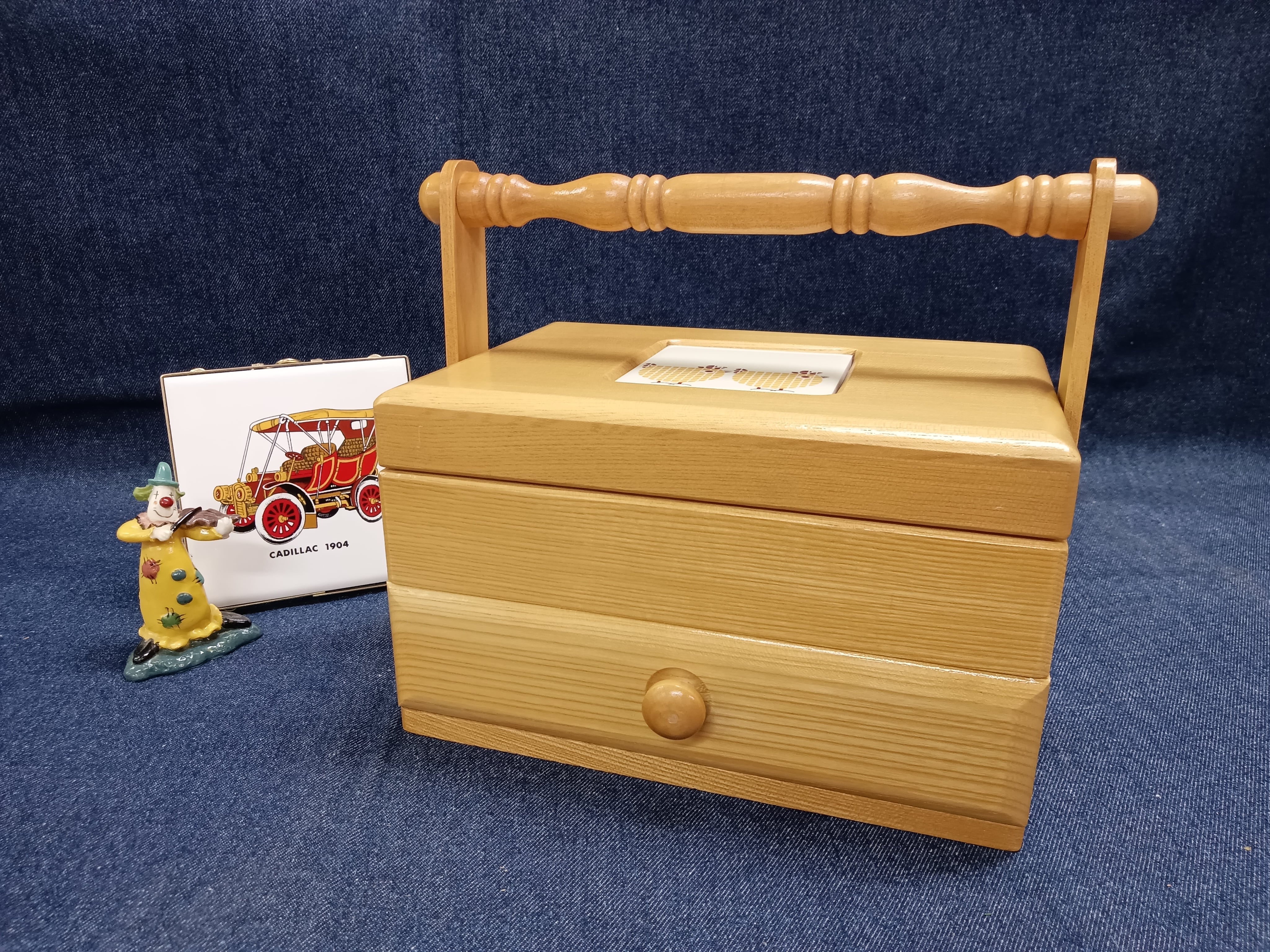 木のぬくもりを感じる、取っ手付きの木製小物入れです。