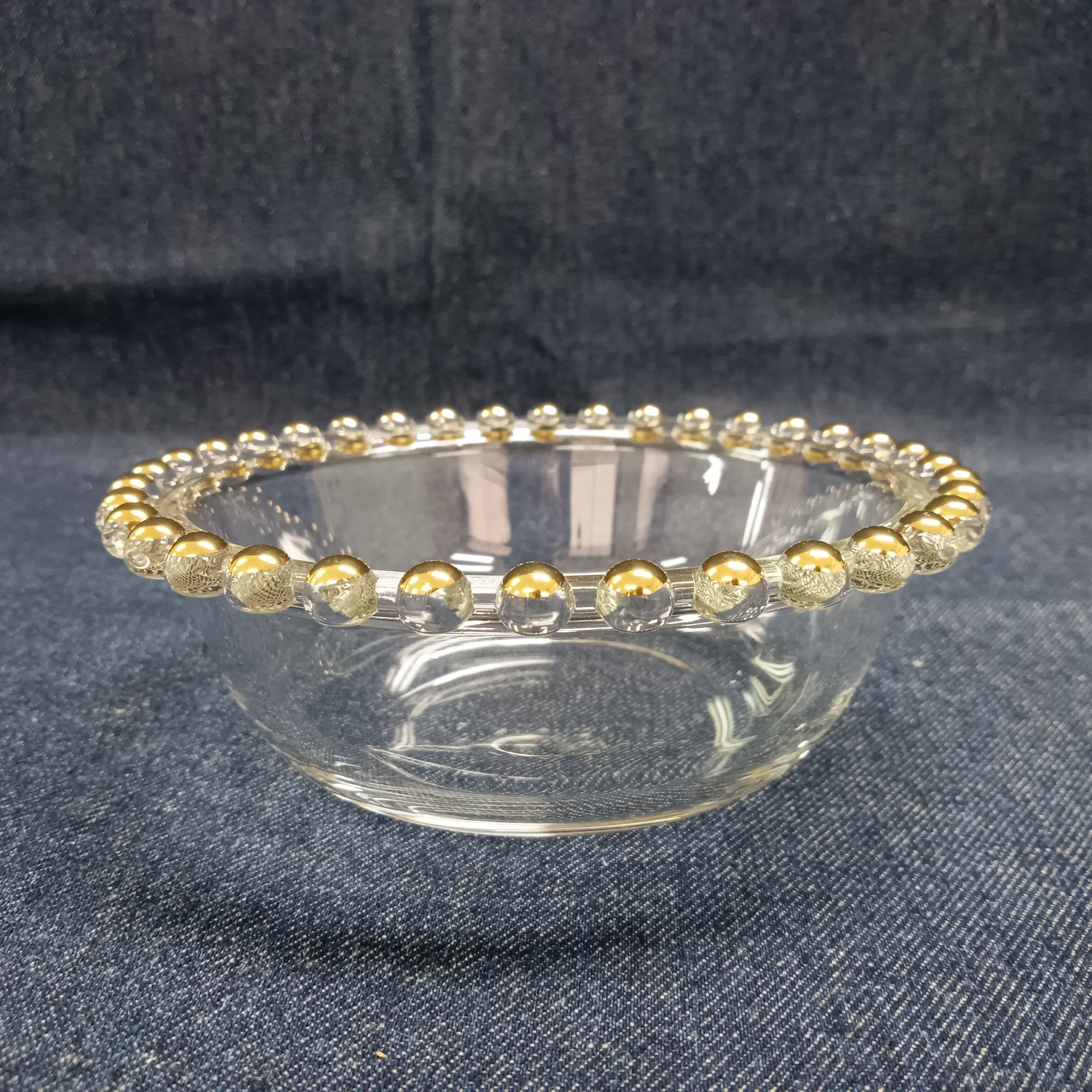 丸玉縁 ガラスボウル 4点セット/昭和レトロ 金色 銀色 食器 デザート・サラダ
